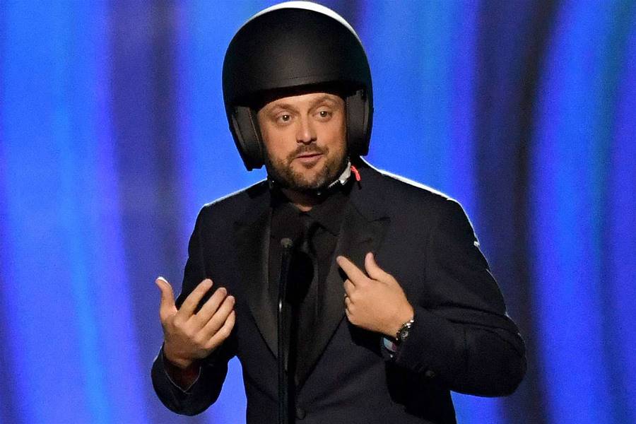 The comedian then took the helmet off, saying “alright, this is stupid”, before presenting the award for Best Spoken Word Album.